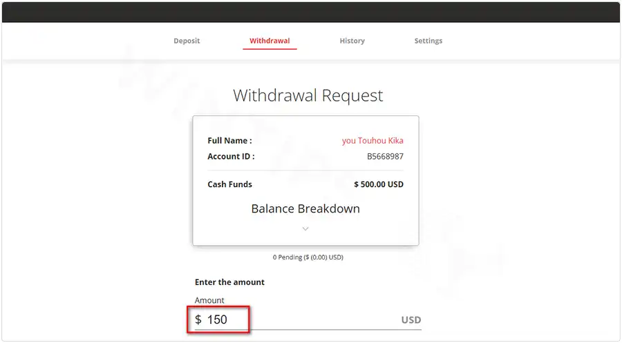 Step 3: Enter the Withdrawal Amount